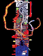 "When Franklyn Liegel passed away in [2012], the Los Angeles art world lost one of its most inspiring teachers, gentlest eccentrics, and most underknown talents. A master of color, form, and texture, Liegel was able to fuse paint, drawing media, and collage almost magically into a perfect hybrid of two and three dimensions. His art is joyous, tactile, rhythmic, and full of surprises, and kind of abstract animation that seems to dance even as it lies sewn to its surface. It deserves much wider recognition than it received in his lifetime."